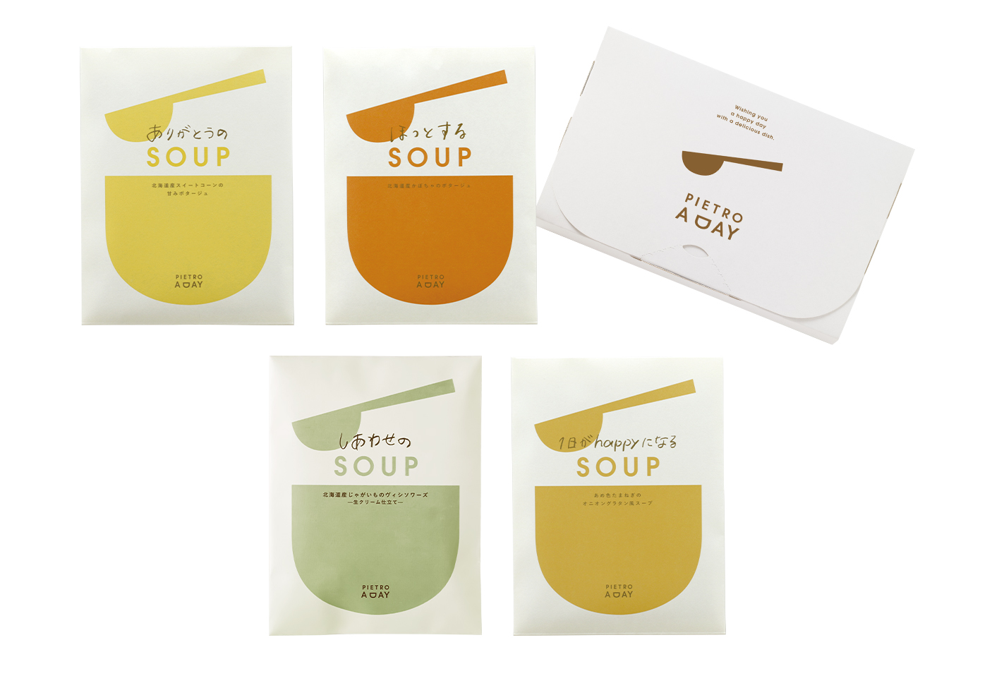 PIETRO A DAYスープをはじめてお召し上がりいただく方に、ぜひ味わっていただきたい人気商品4種類をセットにしました。