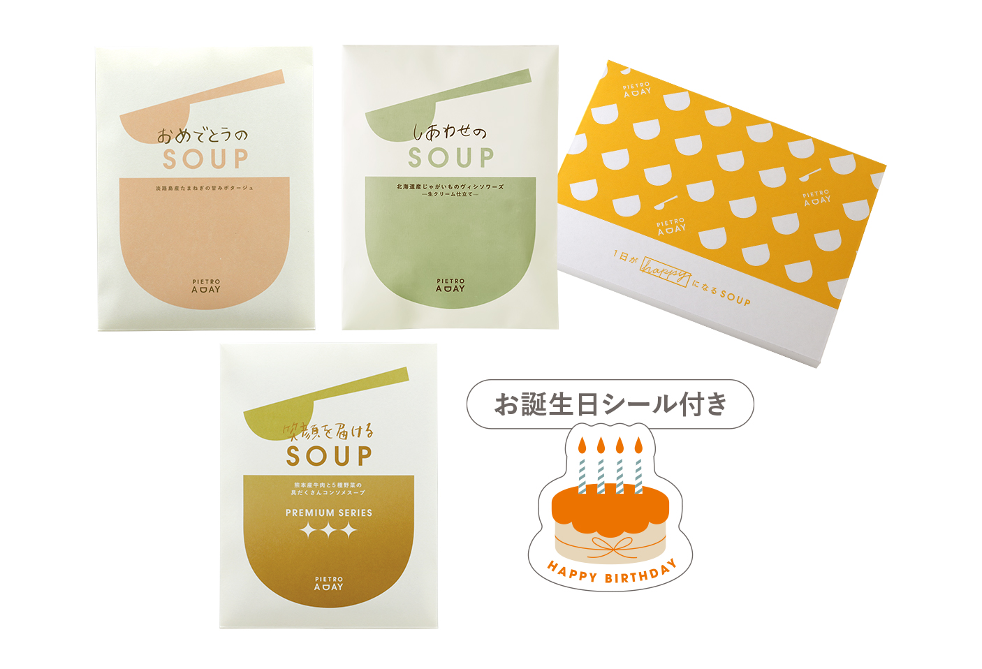 「おめでとうのSOUP」「しあわせのSOUP」などお祝いにぴったりなスープをセレクトしました。