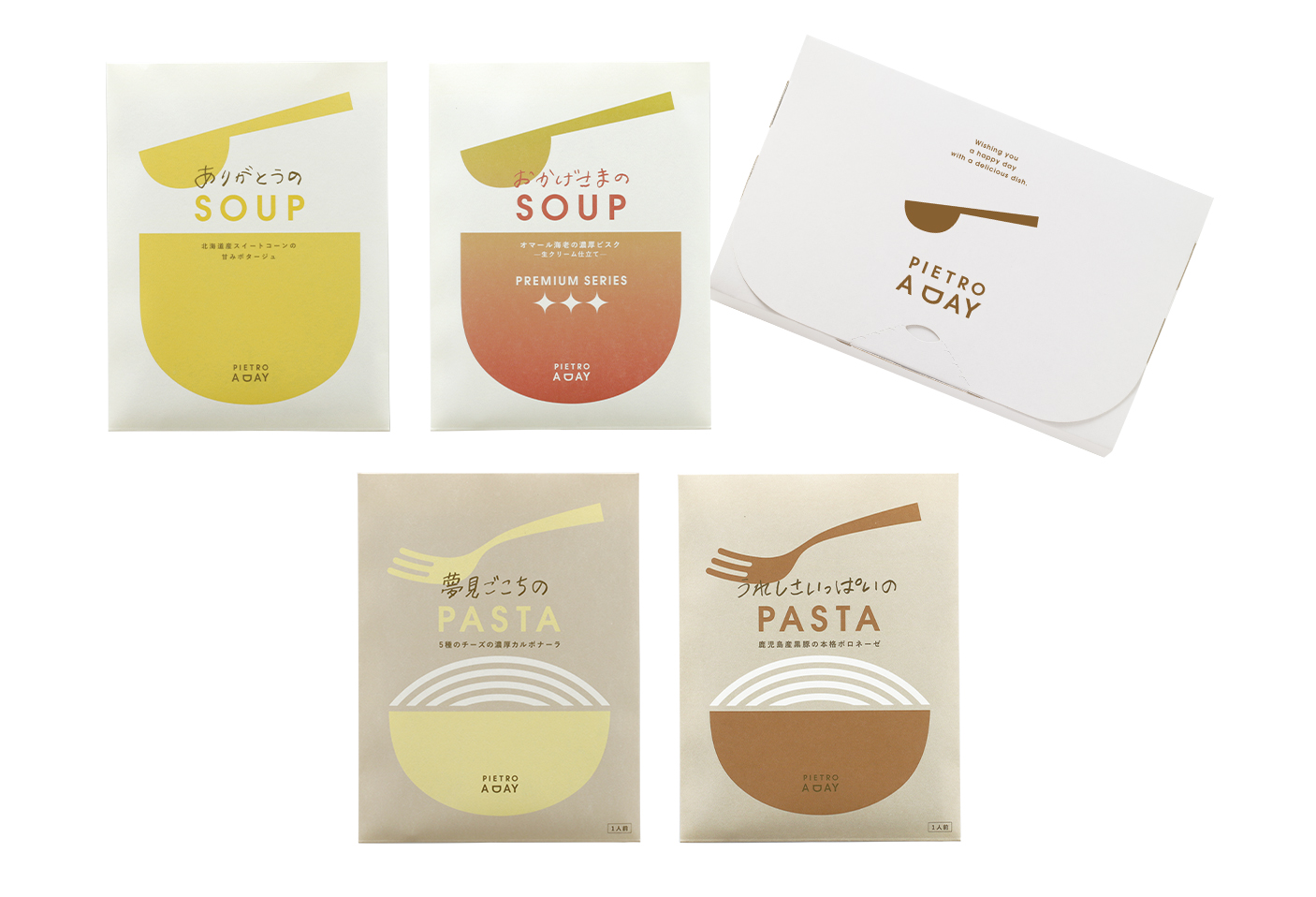 オマール海老の旨みを閉じ込めた「おかげさまのSOUP」やこだわりの黒豚にスパイスを効かせた「うれしさいっぱいのPASTA」など、自慢のレトルト商品をセレクトしました。