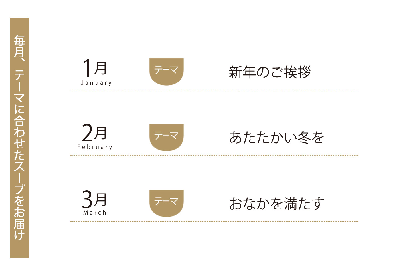 【スープの定期便】毎月、テーマに合わせたスープ10食をお届け。