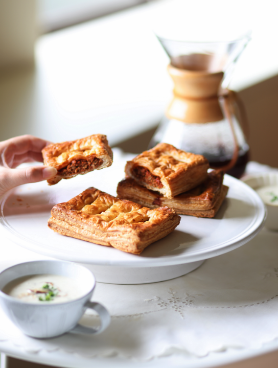 小腹を満たすおかずにも、お酒のお供にもぴったりな、「自家製ひき肉」や「サーモン」を使った2つのお食事パイをご紹介します。