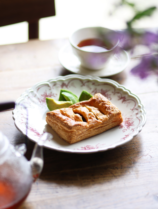 扱い方ひとつで仕上がりに大きな差が生じるほど、繊細なパイ生地。熟練の職人によって丁寧に折り込まれた後、一晩冷蔵庫で休ませることできれいな層が形成され、見た目も美しい96層の生地に仕上がります。